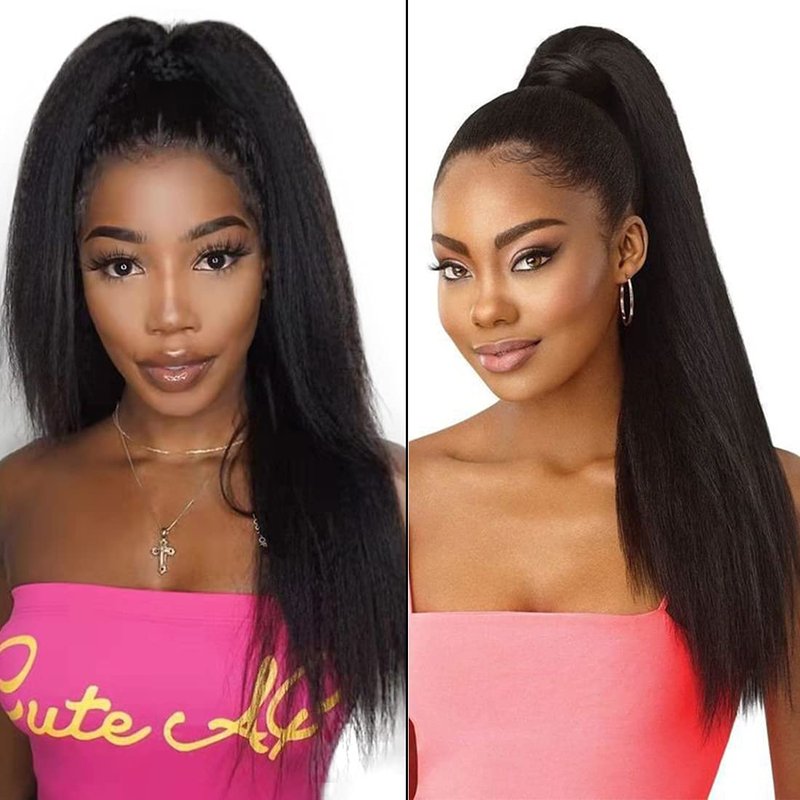 Drawstring Ponytail for Black Women Natural Hair 22Inch Kinky Straight Ponytail Wrap Drawstring Human Hair Extensions 1B Clip in Afro Yaki Hair Pieces 115g/set (22", Kinky Straight)