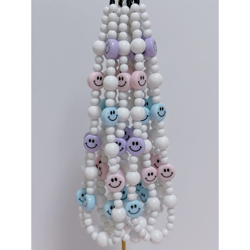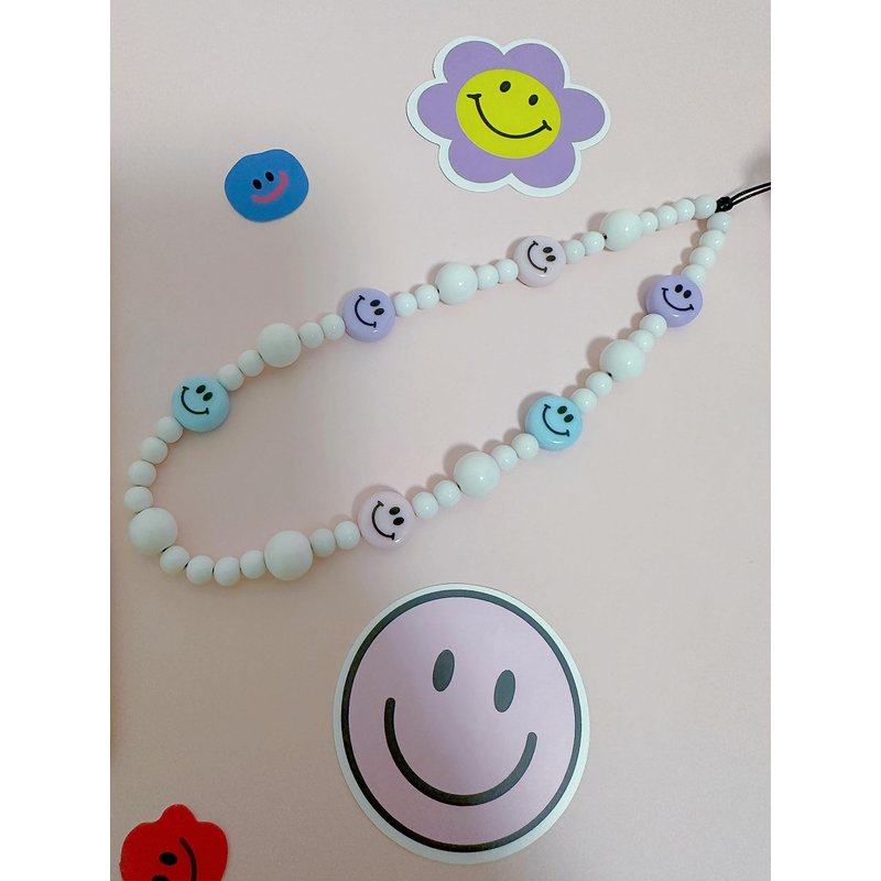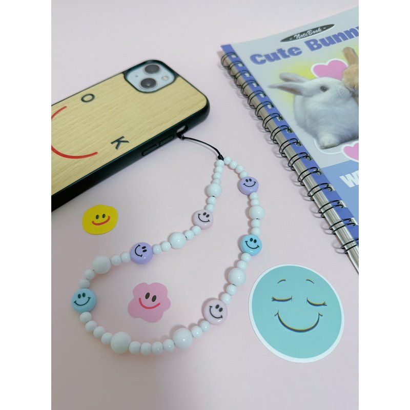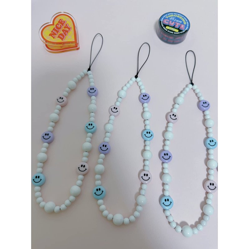Drawwind Phone Charm Strap Universal Cell Phone Lanyard Wrist Strap Beaded Phone Chain String Handmade Phone Case Accessories for Women Girls (Smiley Face)