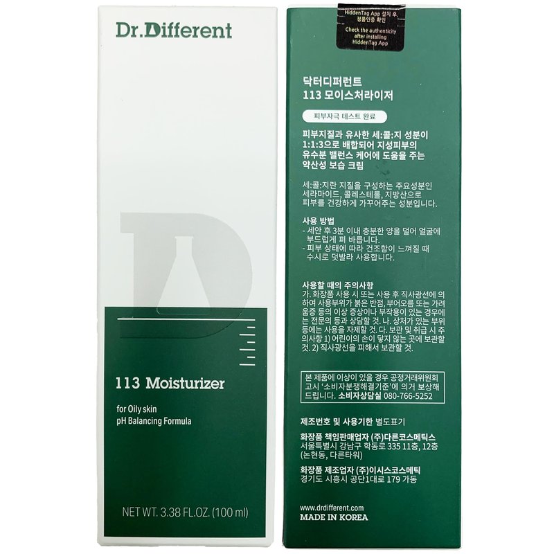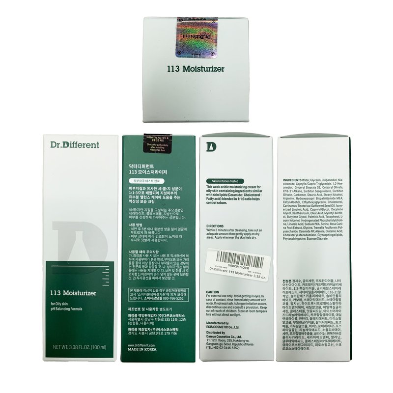 Dr.Different 113 Moisturizer - Sebum Control Face Moisturizer for Oily Skin, Pore Reducing and Trouble Care, Hypoallergenic Moisturizing and Soothing Facial Cream, 3.38 oz.