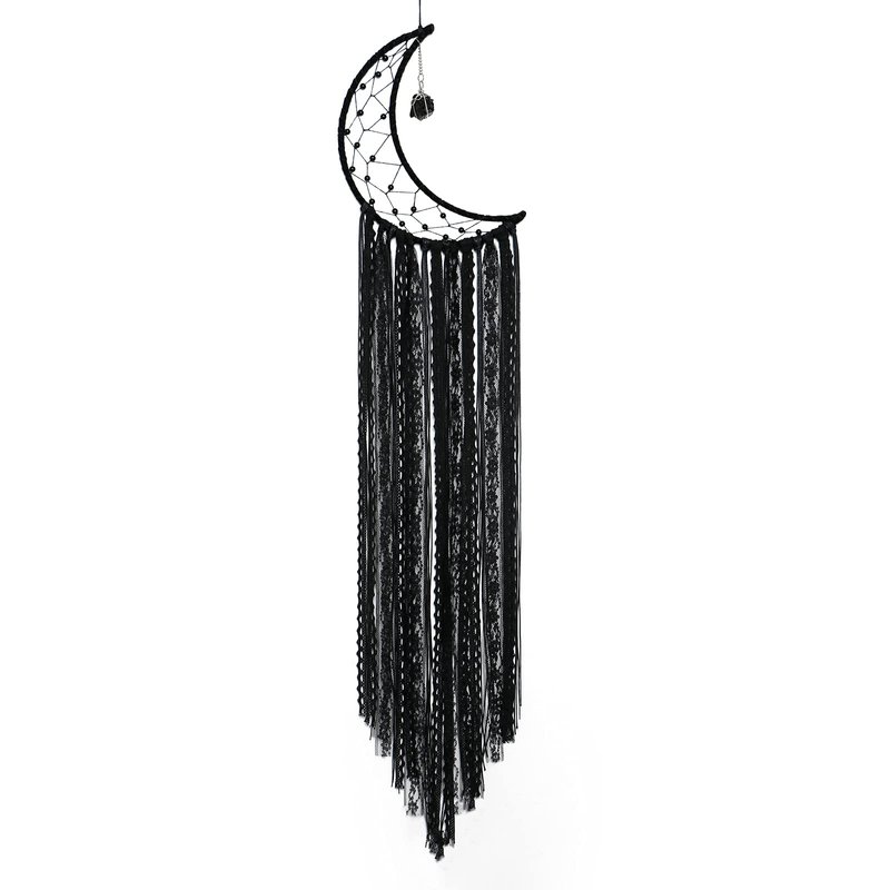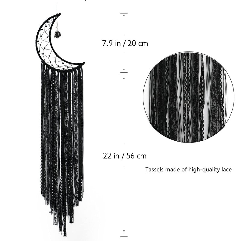 Dream Catcher Black Moon Dream Catchers Hanging Crystal Stone Boho Decor for Bedroom Bohemian Home Decoration Ornament Craft Gift (Black)