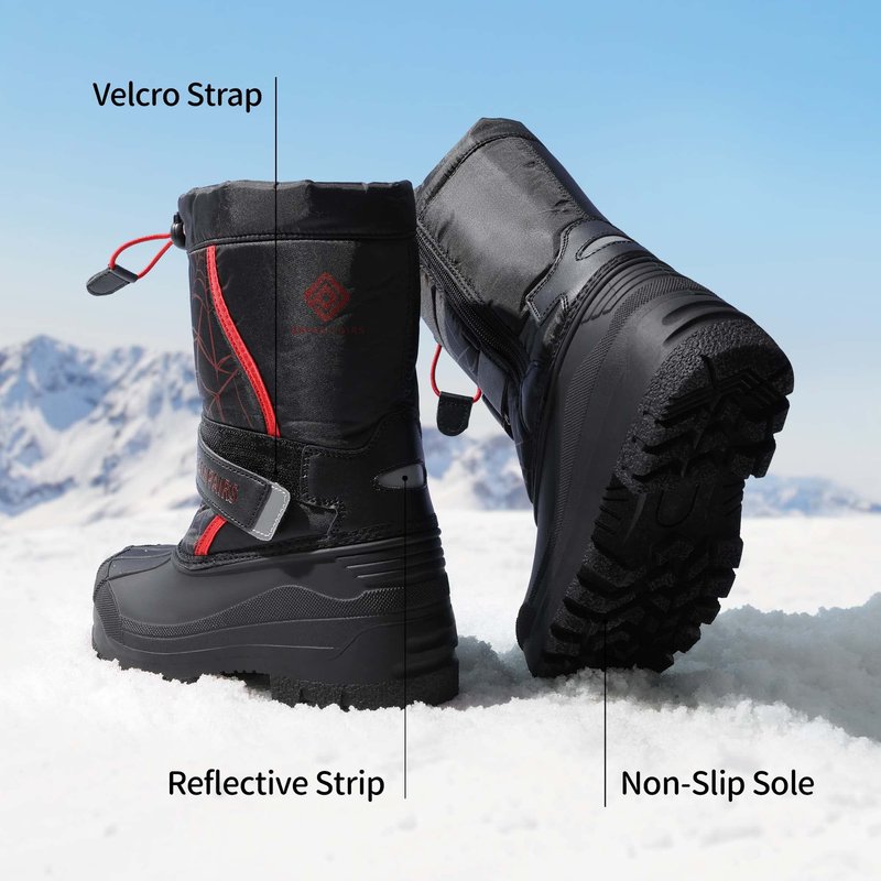 - No Tie Laces: Designed with adjustable elastic drawstring opening to prevent snow from getting inside the boots. The hook and loop strap around the ankle is convenient for children to put on and take off by themselves.