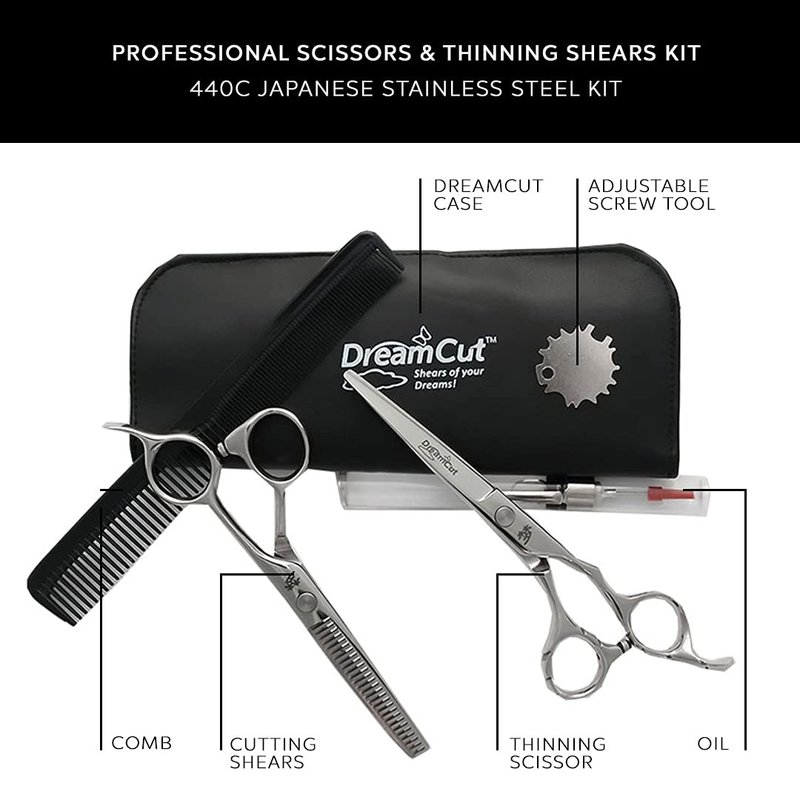 DreamCut 6" Professional Hair Scissors and Thinning Shears 440C Japanese Stainless Steel Kit