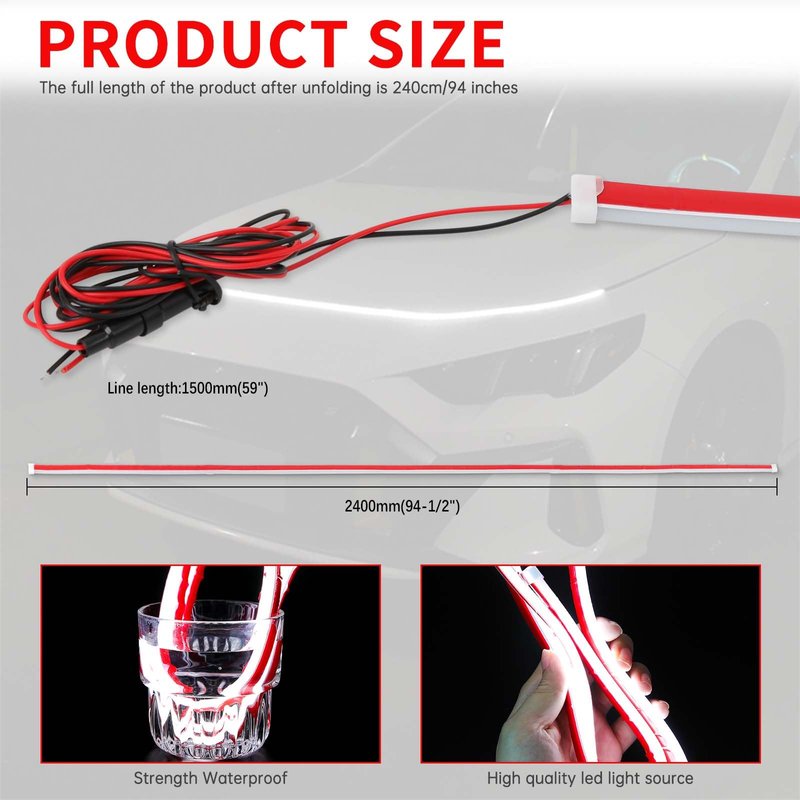 DREAMOTOR 94.5 Inch Car Hood Light Strip, White Exterior Dynamic Car LED Hood Light, Flexible & Waterproof, Universal Exterior Daytime Running Light Strip with Fuse Protection for Cars, SUVs, Trucks