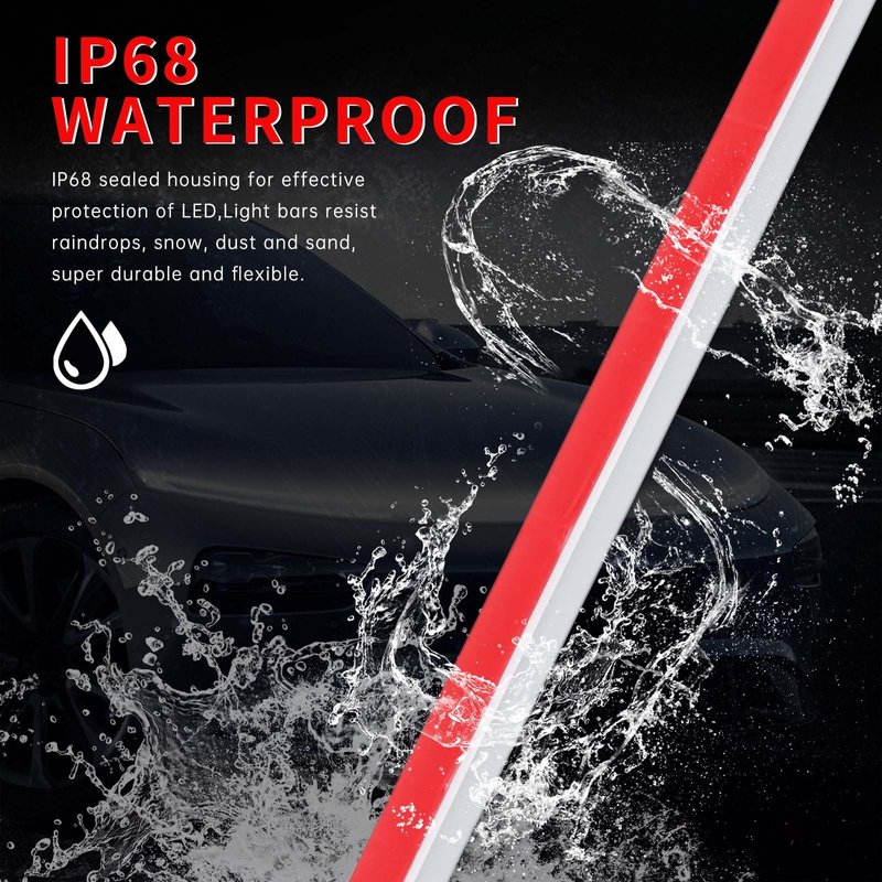 - 𝐈𝐏𝟔𝟖 𝐖𝐚𝐭𝐞𝐫𝐩𝐫𝐨𝐨𝐟 - The car hood light strip is made of high-quality PVC material and not easy to be damaged in the rainy and winter. With an IP68 waterproof rating, it can withstand even the harshest weather conditions. It is also a good warning light in rainy foggy day.