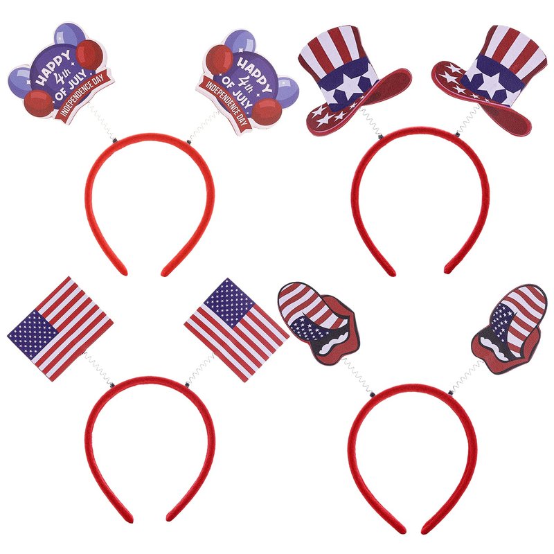 Dremcoue 4th of July Headband Independence Day Head Boppers 4th of July Decorations Hair Band Hair Hoop Patriotic Party 4th of July Festival Headdress Accessories 4Pcs