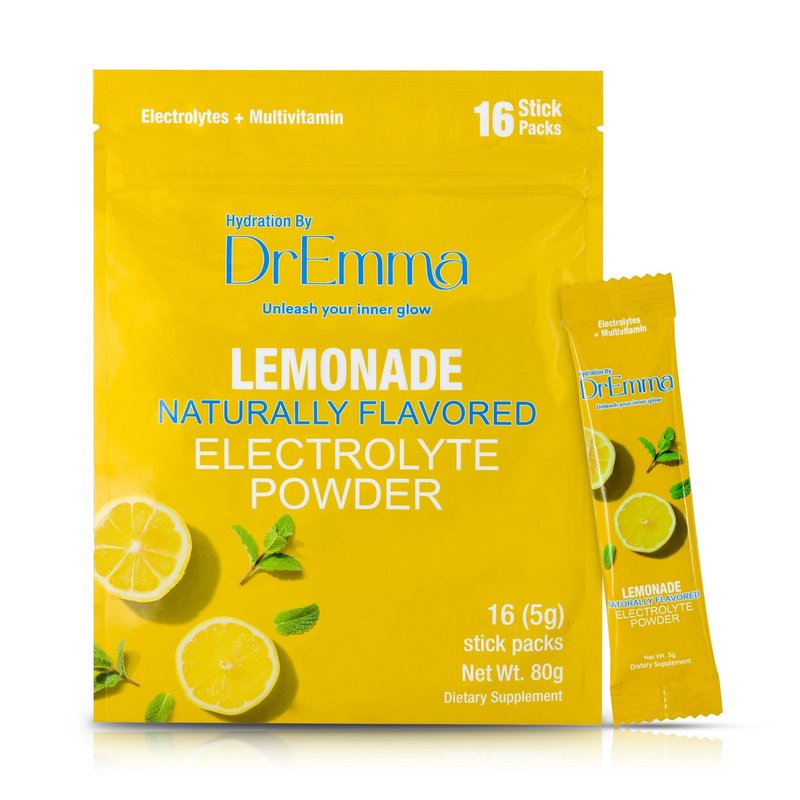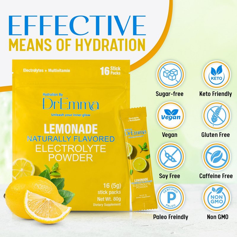 DrEmma - Electrolytes Powder - Hydration Packets - Energy Drink, No Sugar, Lime-Lemonade, Hydration Powder, Drink Mix, Flavored Water Packets, Fasting, Sugar Free, Zero Calories (16 Hydration Sticks)