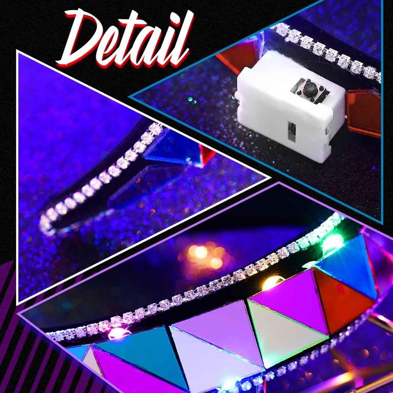 - Glowing rhinestone hair bands with 3 flashing modes: fast flash, slow flash, always bright. Just press the button to use. Built in high capacity battery(LR44), can use all day, you can just operate the switch directly.