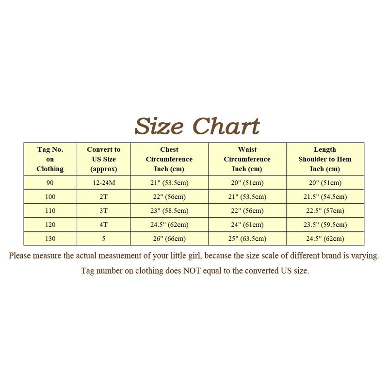 - 5 different sizes for baby and toddler kids, 12-24 months, 2T, 3T, 4T and 5T. Age is only an approximation of size. Please measure the actual body size and refer to the size chart to choose a proper size for best fit.