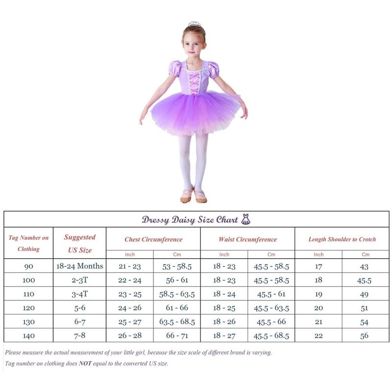 - 【Size and Occasion】6 different size of this gorgeous dancing outfit, 2T to 3T, 3T to 4T, 4T to 5T, 5-6, 6-7 and 7-8. Great for dance class, ballet dance training, gymnastic exercise, stage performance, dancing competition, birthday gift, theme party fancy dress up or Halloween cosplay costume etc.