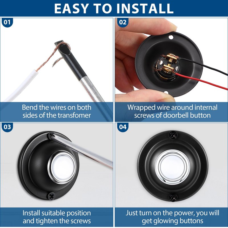 - [Bright LED Light]: the upgraded LED light doorbell button is lit 24 hours a day and work on low voltage; Provide visibility after dark and your visitors will not spend time looking for your doorbell; It does not get hot or burn out like bulbs