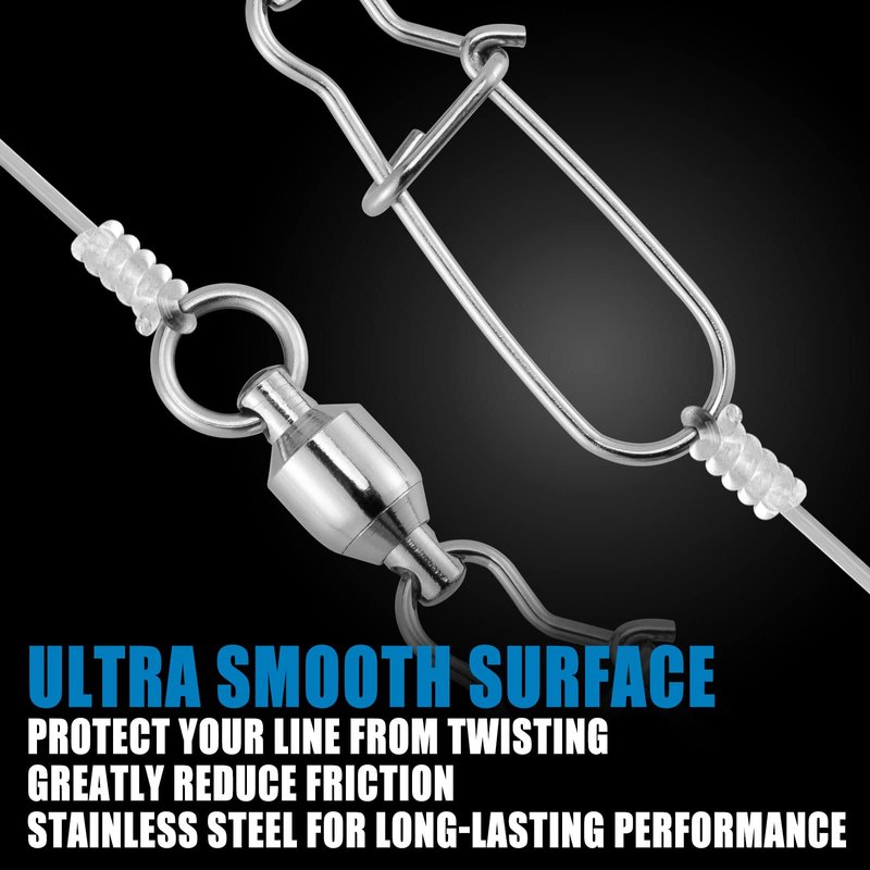 - SMOOTH. These Duo-lock snap swivel loaded with 6 stainless steel balls loaded, they rotate smoothly without any limit and keep lines from twisting.