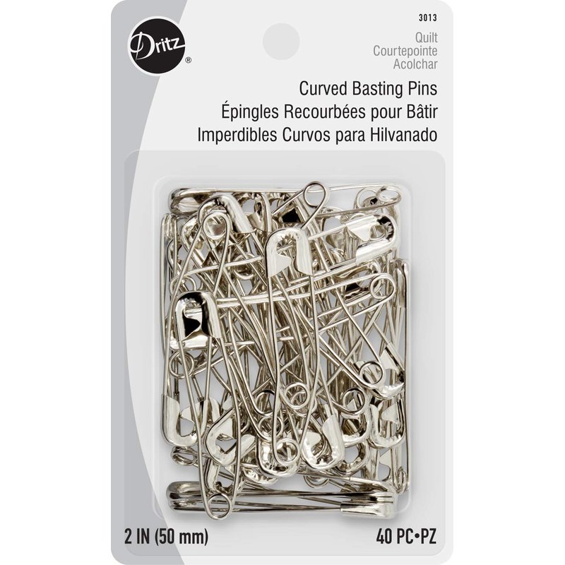 Dritz 3013 Curved Basting Safety Pins, Size 3 (40-Count), Nickel