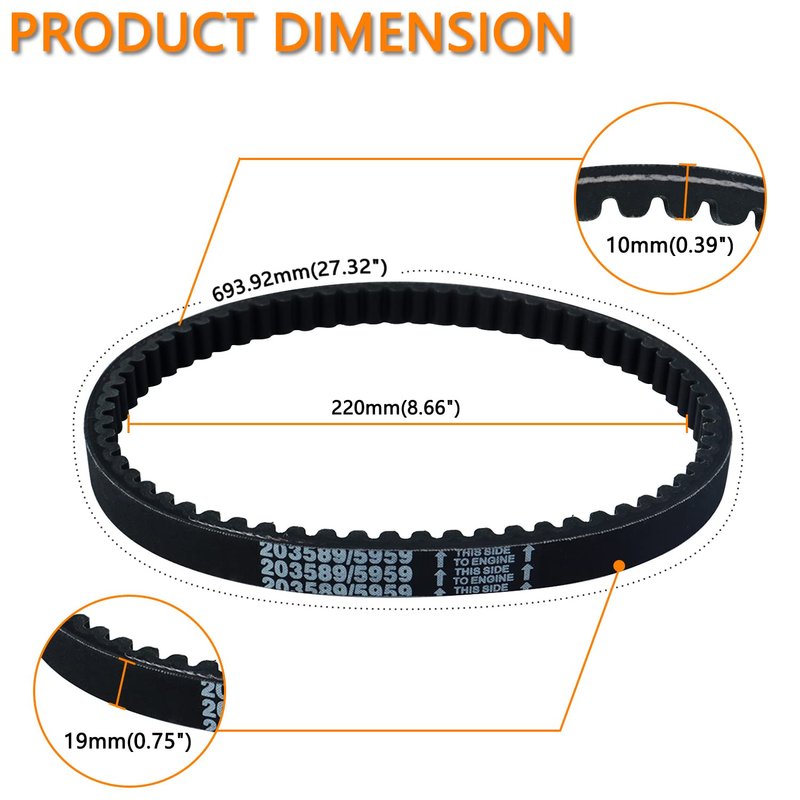 - 【PREMIUM QUALITY】- This 203589 drive belt is made of high-quality rubber material with the highest tensile strength, effectively avoiding all kinds of breakage problems, durable, high strength, and can be used for a long time. The Transmission Belt is made by exquisite manufacturing process, which has better heat resistance and heat dissipation