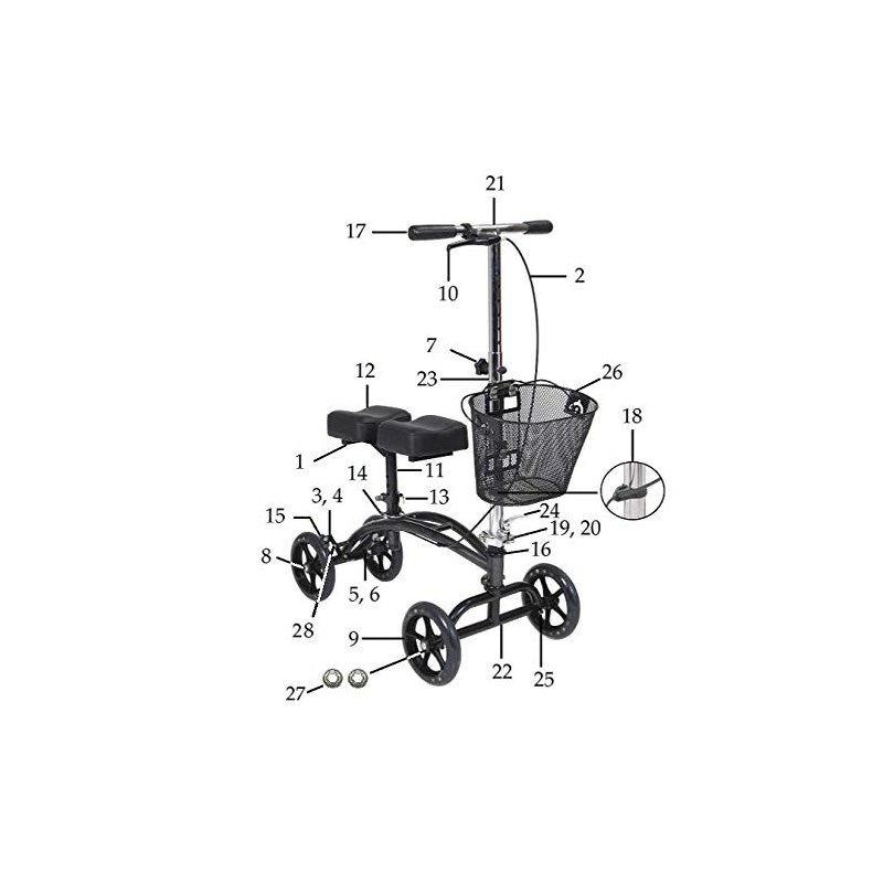 Drive Steerable Knee Walker Replacement Parts (Model 796) (9. Front or Rear Wheel Assembly)