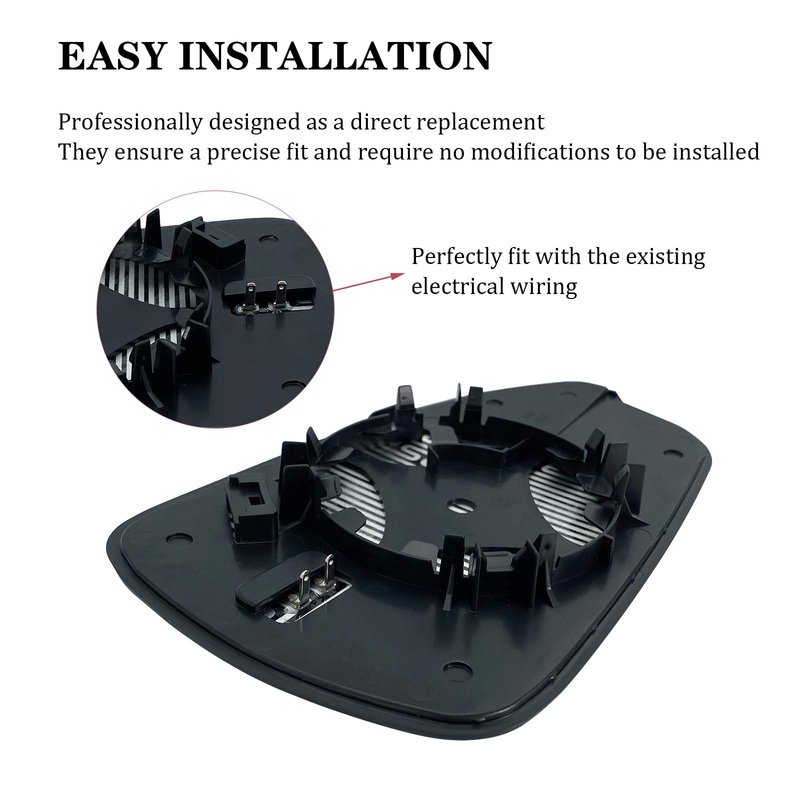 - EASY INSTALLATION - Identical mounting point with factory mirror. Perfectly fit with the existing electrical wiring. Wiring harness must be unplugged from existing backing plate and plugged into the new backing plate before installation. You can finish the installation in a few minutes.