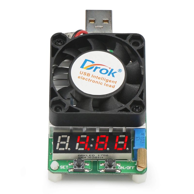 DROK USB Load Tester, Electronic Load Test Resistor Module 25W LD25 USB and Type C Interface Discharge Adjustable Constant Current 0.25A-4A Intelligent Temperature Control with Cooling Fan