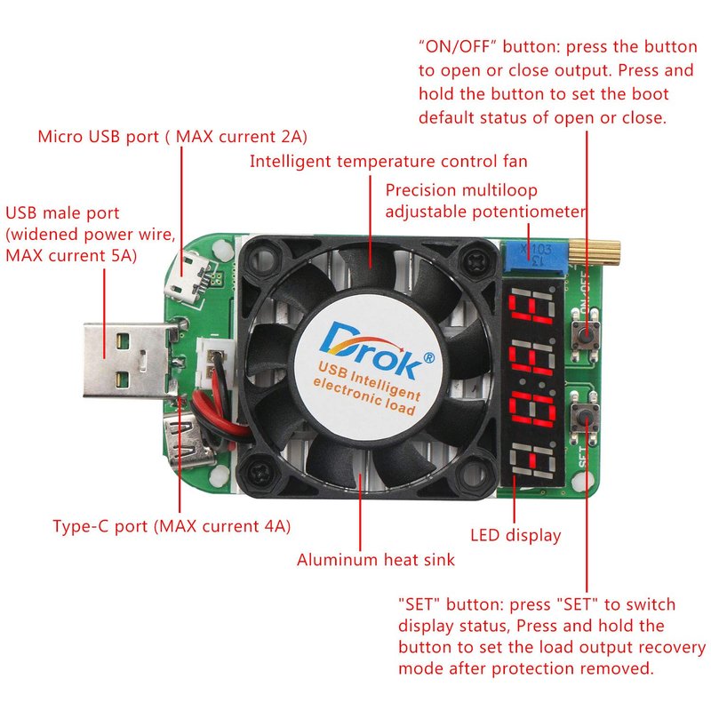 - What is it: it is a USB intelligent temperature control electronic load; with high power, high current, high voltage and intelligent control features.