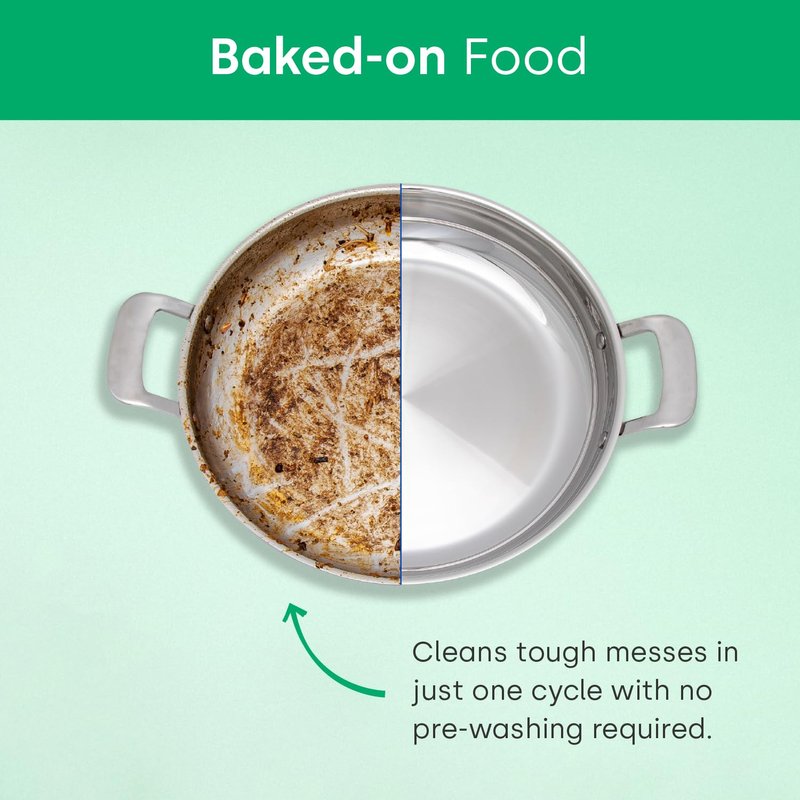 - CUTS GREASE & STUCK ON FOOD: Our dishwasher pods tackle grease, oil, and stuck-on food with powerful enzymes and surfactants, lifting away tough stains like coffee and tea, leaving dishes, flatware, glassware, silicone, and plastics residue-free and shining. No pre-wash needed—just load for a consistently spotless, gleaming finish. Simplify your routine with our high-efficacy auto dish detergent solution.