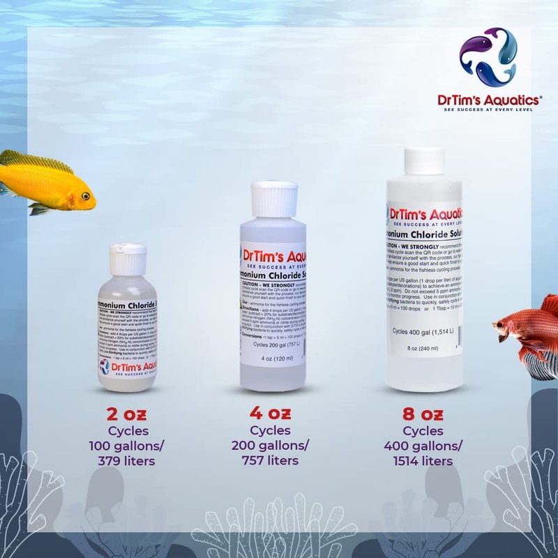 - DrTim’s Aquatics Ammonium Chloride for fishless cycling in saltwater, freshwater & reef aquariums