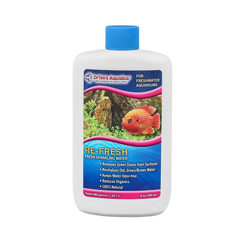 DrTim’s Aquatics Re-Fresh for Freshwater Aquariums – 100% Natural Fish Tank Sanitizer & Revitalizer Conditioner Solution for Fresh, Crystal-Clear, Sparkling Water - 8oz - Treats 480 gal