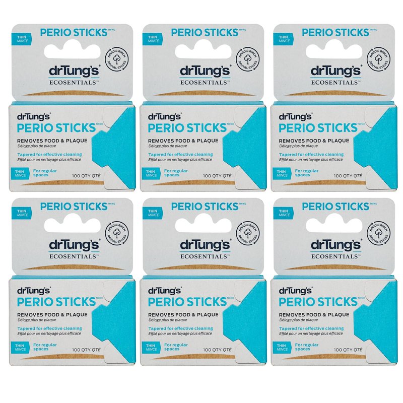 DrTung's Double-Sided Perio Sticks - Dental Sticks for Humans, Dental Floss Picks, Plaque Remover for Teeth, Dental Toothpicks, Dental Picks for Teeth Cleaning - Thin, 100 Count (Pack of 6)