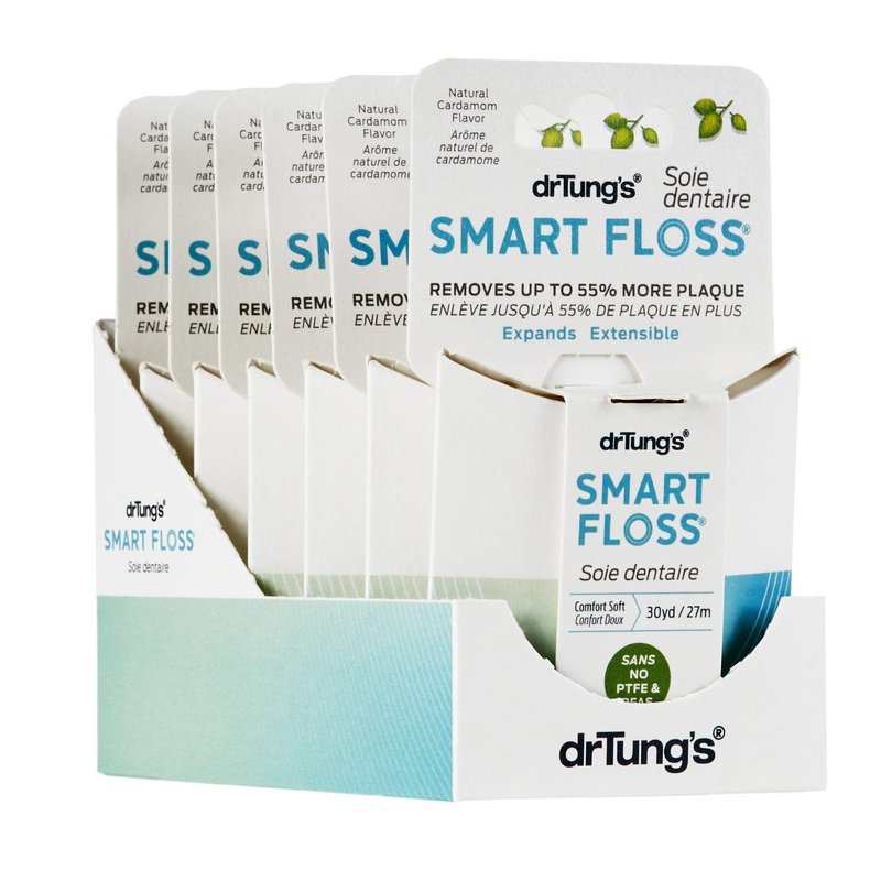 DrTung's Smart Floss - Natural Floss, PTFE & PFAS Free Floss, Gentle on Gums, Expands & Stretches, BPA Free Floss - Natural Dental Floss Cardamom Flavor (Pack of 6)