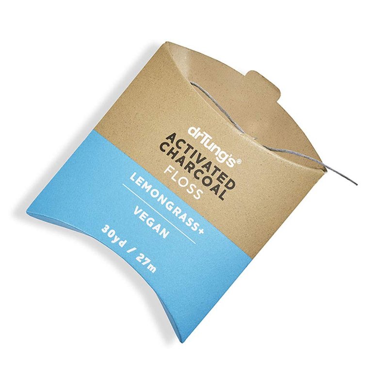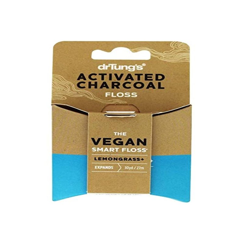 DrTung's Vegan Activated Charcoal Floss - Natural Dental Floss, Gentle on Gums, Expands & Stretches, BPA Free Floss - Lemongrass Flavor (Pack of 1)