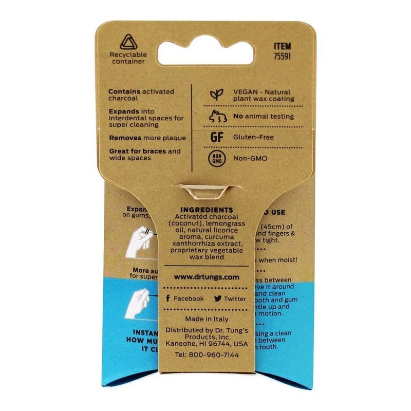 DrTung's Vegan Activated Charcoal Floss, Natural Lemongrass Flavor Dental Floss