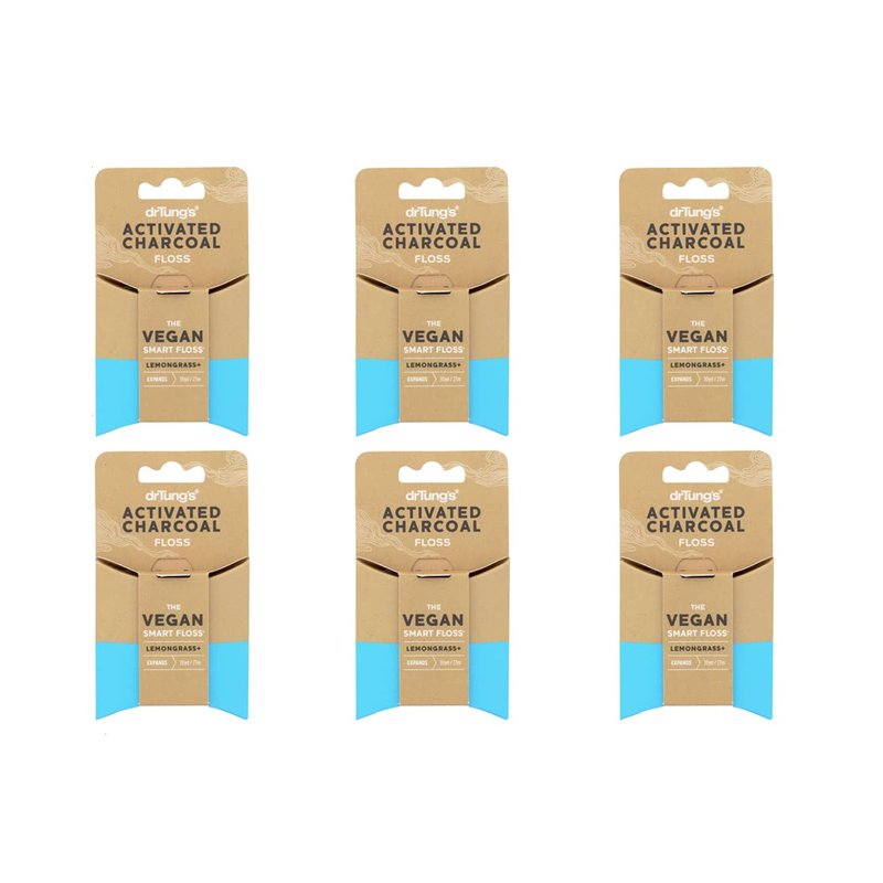 DrTung's Vegan Activated Charcoal Floss, Natural Lemongrass Flavor Dental Floss 6 Pack