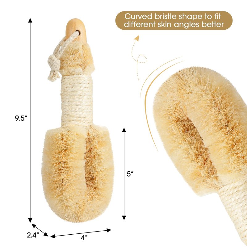 - Easy to Use: The hemp handle strengthens the grip, Cotton rope helps you to hang it. Curved bristle shape is being designed to target various body parts thus promotes healthy circulation of blood.