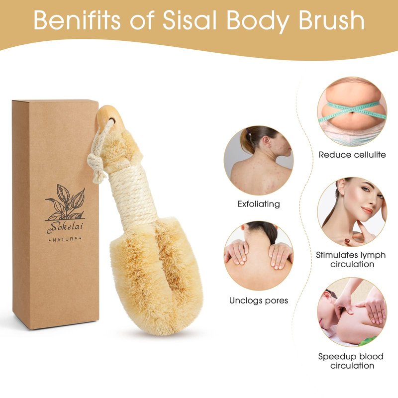 Wokelai Natural Sisal Spa Dry Skin Brush Ideal for dry brushing, the natural sisal fibers on this brush whisk away dead skin cells to reveal smoother skin before you shower. Whisks away dead, dry skin Improves lymphatic drainage Helps detoxify the body How to Use the Dry Brush : 1.Starting from your feet, brush upwards over your entire bodymoving towards the heart. 2.Use gentle, long sweeping strokes with light pressure. 3.Shower after dry brushing to wash away all the skin debris. 4.After brushing apply some cream or oil to your body if you have extremely dry skin. TIPs: Do not use the dry brush on delicate, inflamed skin, or open wounds Please don't mix dry brush with your family, same as a towel, try to avoid the possibility of cross infection. How to Care for a Dry Brush : After use, rinse the dry brush with soap and water.Allow it to dry. Please store in a cool, dry and ventilated place. Replace the brush if it’s showing signs of wear and