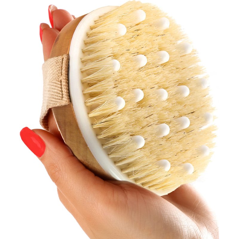 - Natural Design - Your skin deserves the finest quality bath body brush! That’s why ours features 100% natural bristles, a smooth, polished wood handle, soft massage nodules and canvas hand strap, making it the most durable of its types. Treat your body with the best body brush for dry brushing naturally!