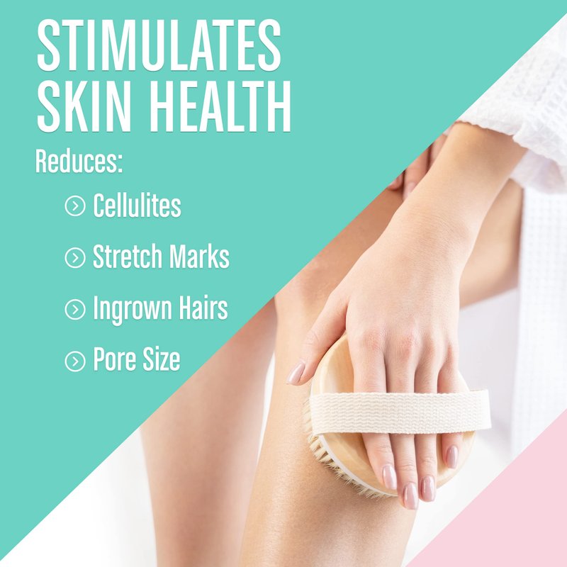 Uncover the Secret to Softer Skin with Dry Brushing Body Brush Dry brushing has held incredible health benefits for centuries. From revealing softer skin, to supporting lymph drainage, to removal of harsh toxins in your body, to blood circulation and cellulite reduction - the secret is out. This is the easy, affordable answer to your new healthy skin! Cellulite, See you later! A Dry Brush helps break down cellulite and helps to reduce its appearance on your body. Use it as a cellulite brush, cellulite body scrub for thighs and butt, or cellulite massages and feel confident in your smoother, younger-looking skin! Ingrown Hairs, You’re Out! As an ingrown hair brush, dry brushing helps to prevent ingrown hairs from forming through exfoliation of tucked-under ingrown hair. And for those pesky bikini parts, this is a smooth skin game-changer! Healthy Skin, Inside and Out! It’s time to stimulate your skin’s health with your new, exfoliating body scrub brush! Exfoliating brush for ingrown hair with dry brushing helps your blood circulate better and drain the lymphatic system of harmful toxins so your dry skin brush can work better! Use as a body exfoliator or body scrubbers for use in shower and discover a brush for dry skinnt new you, inside and out! Your body brush is simple and painless to use. So what are you waiting for? Grab your dry body brush and let’s get scrubbing! Your new body exfoliator body brush has ENDLESS BENEFITS, including: Cellulite appearance reduction - You body exfoliater brush helps to break down and reduce the appearance of cellulite Smoother/softer skin - Shed that dead skin, and show off your new, softer skin Improves blood circulation - Dry brushing gets your blood flowing and energy pumping Eliminates clogged pores - Bristles open pores and free toxins in your body Reduces ingrown hairs - Dry brushing prevents ingrown hairs from forming. Get this body brush for women exfoliation and body brush for dry brushing natural now!