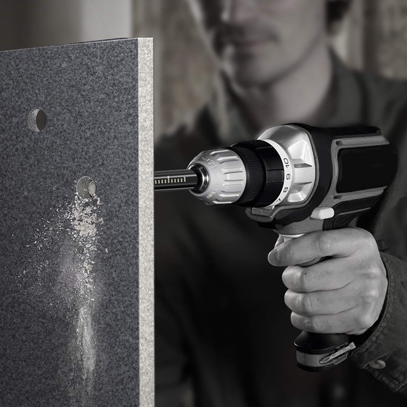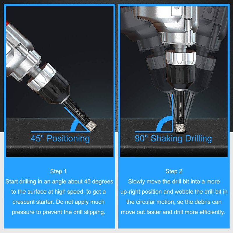 3.Do not need to apply much pressure,let the drill bit do the work, you will feel the drill bit break through theback of the glass or tile once the hole is completed