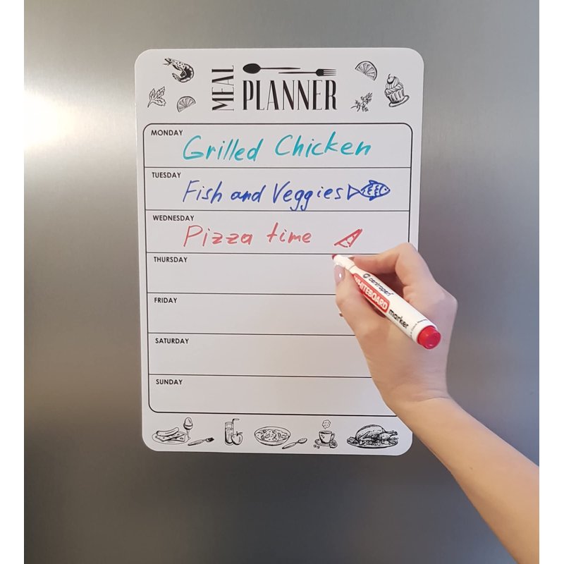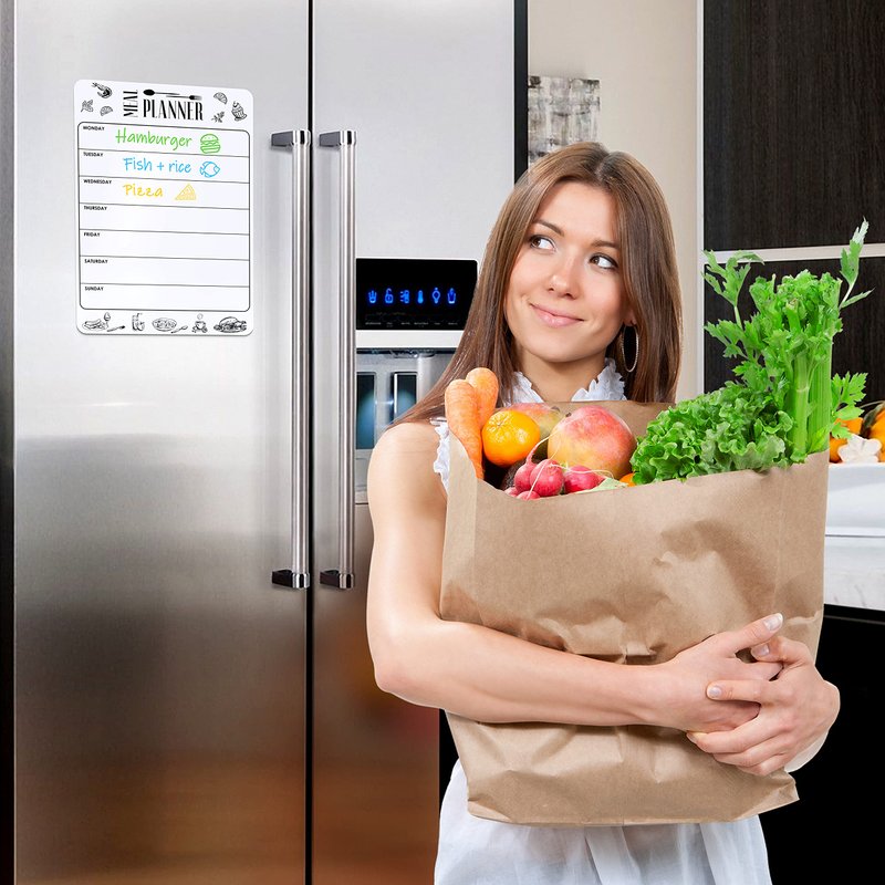 - ✔️ STAY ORGANIZED - With this dry erase magnetic meal planner, you'll always know what's for dinner. The board measures 8.5x12 inches, so there's plenty of space to write down all your meal ideas.