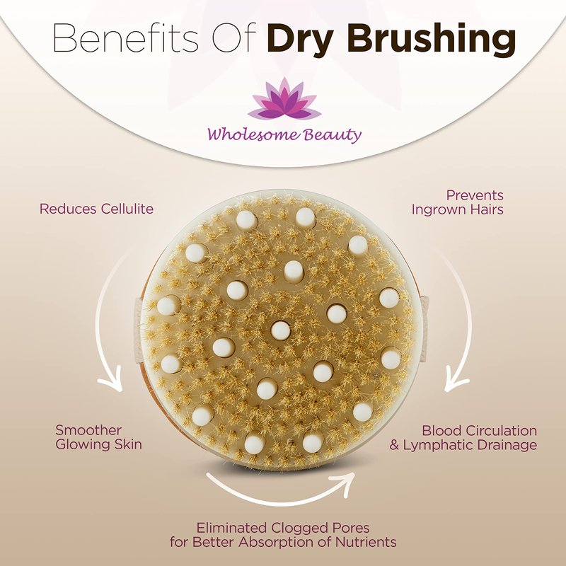 - DRY BRUSH YOUR WAY TO GORGEOUS SKIN: The Wholesome Beauty Dry Skin Brush features soft bristles and expertly designed massage nodes to gently but effectively remove the layers of dead skin built-up that cause your skin to look all dry, flakey and rough. Our exfoliating brush is perfect for every inch of your body, from your legs and thighs that suffer the most by shaving, to your back, tummy or any other part that could use some extra care!