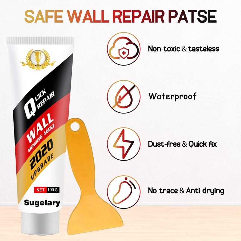 - ★Packages Include: 3x Wall repair paste(100g), 3x Nozzle extender,3x Scraper, 3x Rubber gloves, and 3 x Sandpaper. Everything you need for wall mending-all in one easy tool kit. Getting a professional-quality Drywall Patch Repair Kit for your damaged and chipped wall has never been easier.