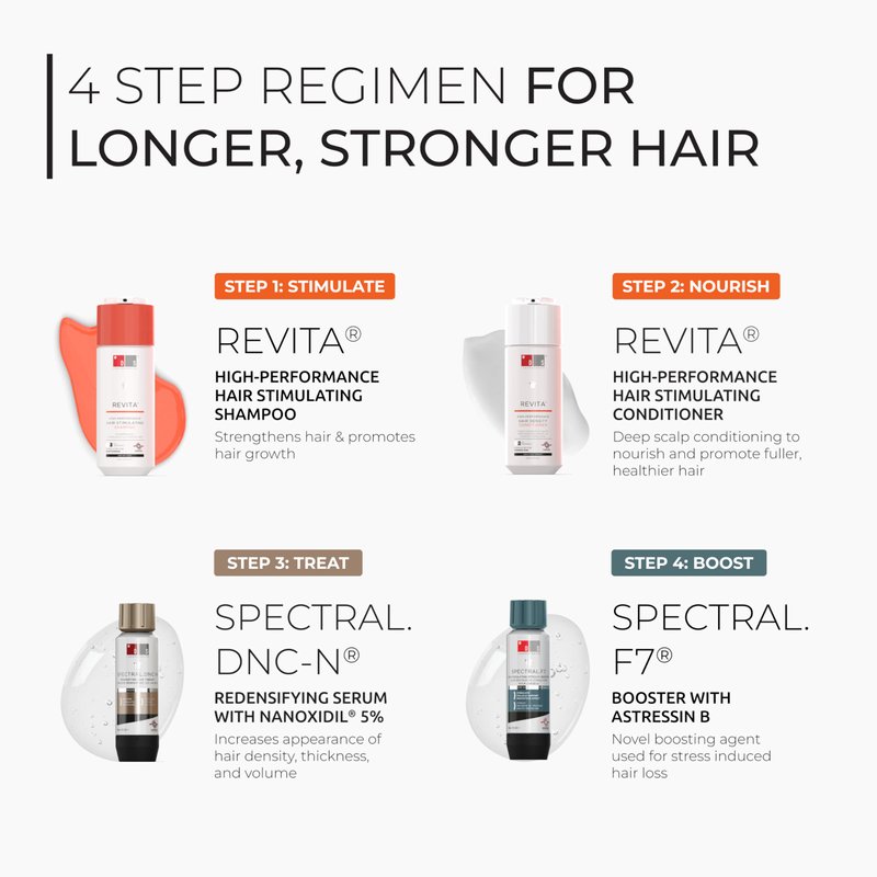 Spectral.F7 is a novel boosting agent that incorporates Astressin-B, a powerful novel peptide. Our water-based formula avoids leaving an oily or sticky residue and is formulated for both men and women. Our water-based formula avoids leaving an oily or sticky residue. Spectral.DNC-N is the first topical serum to employ 5% Nanoxidil complex. This powerful proprietary molecular compound improves the appearance of thinning hair thanks to its low molecular weight that enhances absorption and efficacy. Our unique formula combined with scientifically proven ingredients of the highest quality is encapsulated in our proprietary Nanosome Delivery System. This lightweight serum minimizes hair shedding and increases the appearance of hair density, thickness, and volume. hair brush, hair growth oil, hair growth products, hair mask, hair oil, leave in conditioner, rosemary oil for hair growth, scalp massager, scalp massager hair growth, scalp scrubber, hair spray, rosemary oil, castor oil, clarifying shampoo, coconut oil, curly hair products, dandruff shampoo, dry shampoo, aceite para el cabello, beauty products, biotin hair growth serum, biotin oil, biotin supplement, castro oil, cepillos para cabello, coconut oil hair, collagen gummies, deep conditioner for dry damaged hair, detangler spray, detangling spray, dry scalp treatment, hair care, hair care products for women, hair detangler, hair detangler spray, hair detangler spray for women, hair growth for men, hair growth oil for black women, hair growth shampoo, hair growth supplement, hair growth vitamins, hair growth vitamins for women, hair gummies, hair loss shampoo, hair loss shampoo for women, hair mask for growth, hair massager, hair massager for hair growth, hair moisturizer, hair mousse, hair oil for dry damaged hair and growth, hair oils, hair oils for hair growth, hair products for women, hair regrowth treatment for women, hair repair, hair scalp massager, hair scrubber, hair serum for hair growth, hair shampoo