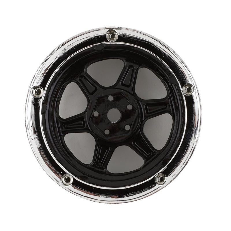 DS Racing Drift Element 1/10 RC Drift Car Rims Wheels, Set of 2, 6-Spoke, Adjustable Offset, Compatible with Yokomo YD MD RD, MST RMX, Reve D RDX, Redcat RDS, HPI, Tamiya TT (Black w/Chrome Lip)
