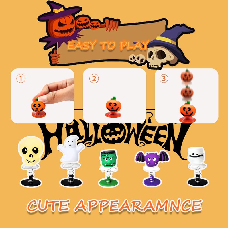 -Different ways of playing:Players can judge the winner by comparing the height of the Halloween jumping popper toys.