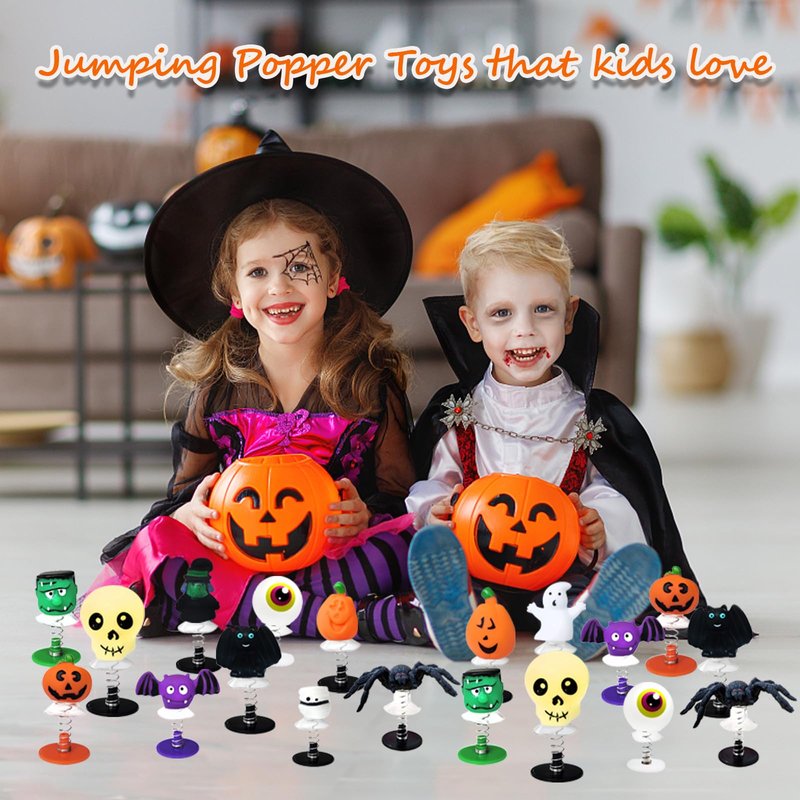 Dshengoo 24 PCS Halloween Jumping Popper Toys,Spring Launchers Party Favors Supplies for Kids,Pinata,Goodie Bags,Classroom Prizes,12 Styles