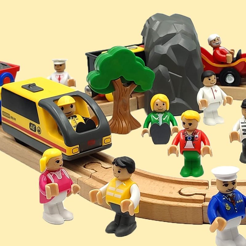- Include - this listing include 14 pieces different figures( 3 Office Clerks , 1 Waiter , 1 Doctor , 1 Nurse , 1 Teacher , 1 Journalist ,2 Captains ,1 Driver , 1 Pilot , 1 Gang ,1 Father Christmas ),not include any trains cars track.
