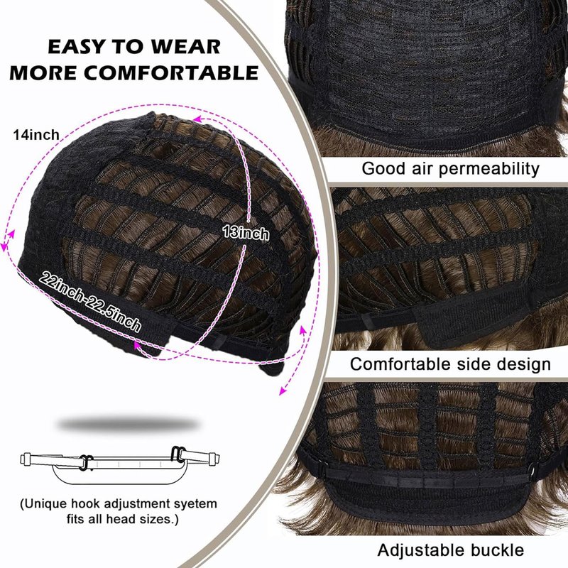 - Cap Size: This Short Straight Women Wig cap is about 22.5". Soft stretch cap with adjustable straps. Fit your head size perfectly.
