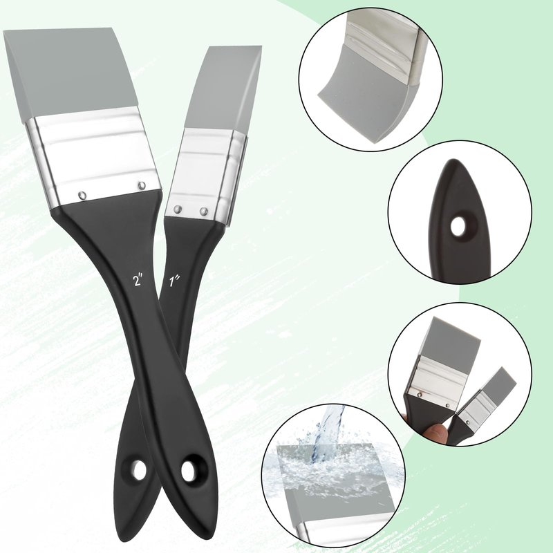 - Easy to Clean: The silicone head of flat paint brush is tightened with a metal ferrule and is not easy to fall off. Silicone brush is easy to clean, simply wipe clean after each use, easy to clean with soap and water even after paint has dried on the surface