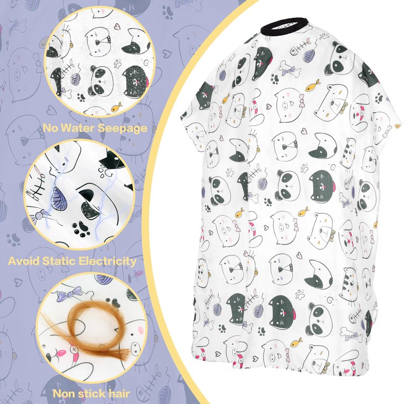 - Cute Design: This hair cutting cape is designed with a variety of cute cartoon patterns, which makes the children happy and relaxed, no longer rejects the haircut so that you can have a good haircut at home