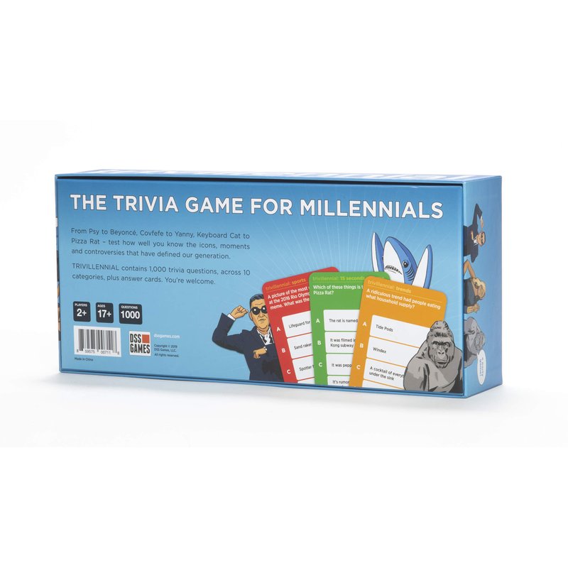 DSS Games Trivillennial | The Trivia Game for Millennials | Party Card Games, 1000 Trivia Questions & Answers | Fun Card Games for Adults Game Nights, Gatherings, & Parties | Ages 17 Up