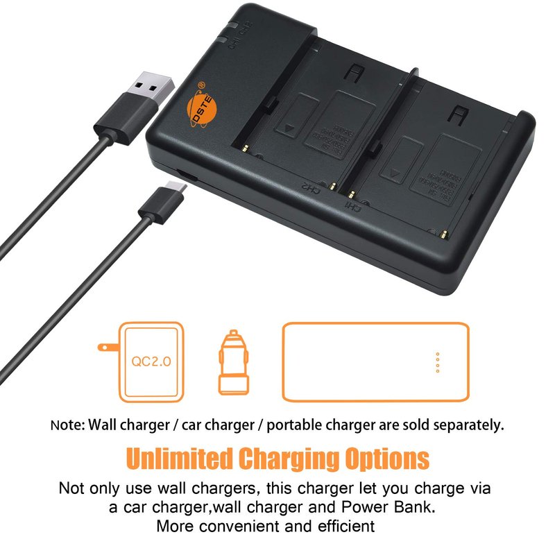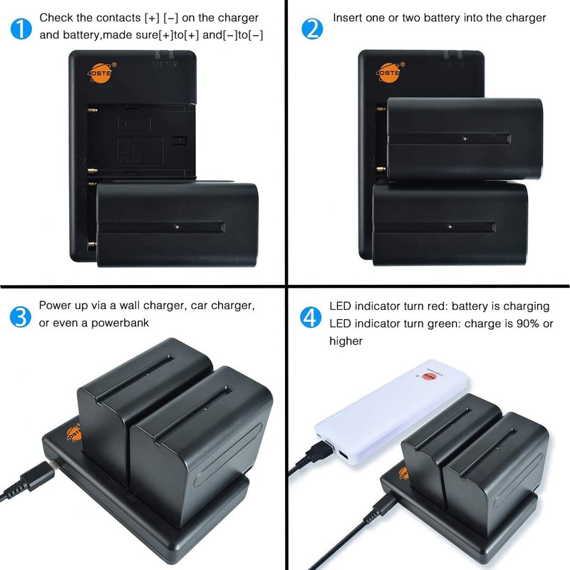 - Three Ways to Charge: Power up via a wall charger, car charger, or even a powerbank; Micro-USB 5V/2.1A max input recharges 2 full batteries in just 6 hours. Note: wall charger, car charger and power bank are not included