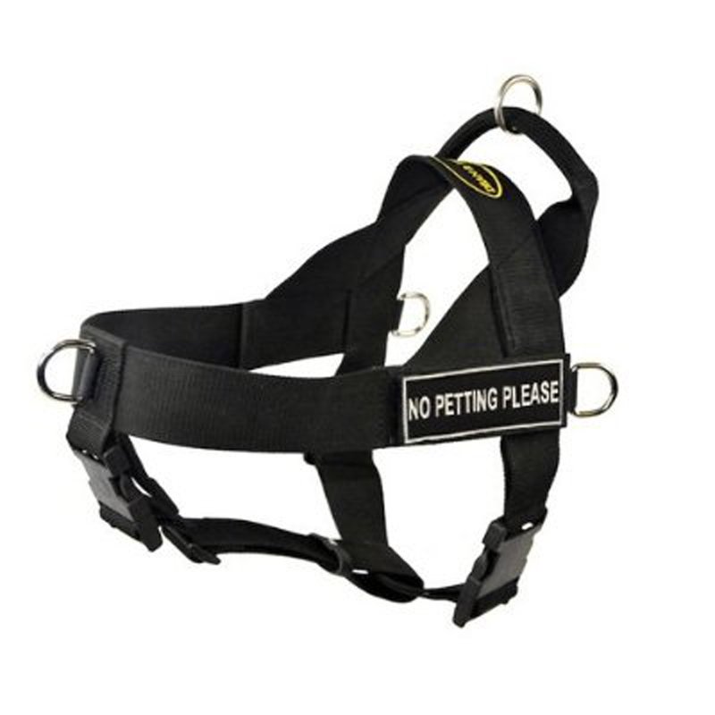 DT Universal No Pull Dog Harness, No Petting Please, Black, Medium, Fits Girth Size: 26-Inch to 32-Inch