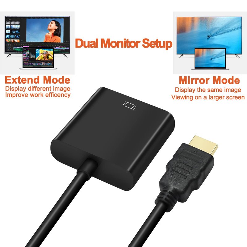- Compact HDMI-VGA converter male to female with gold plated connector resists corrosion and increases durability; supports mirror mode and extended desktop mode for dual screen setup