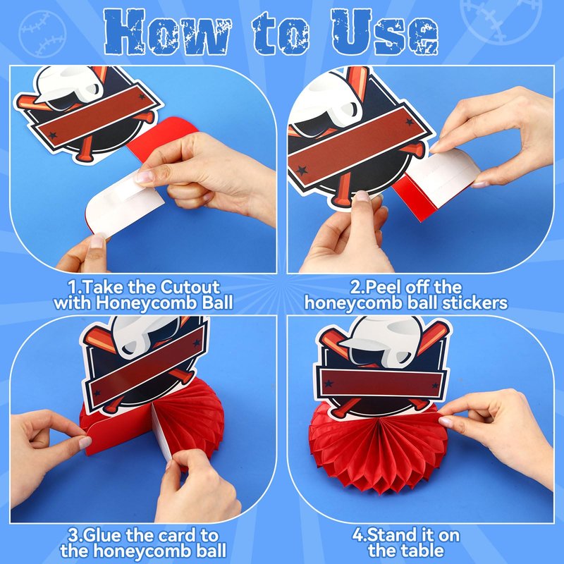 - Easy to Use: The baseball party decorations are very simple to use. Simply peel off the sticker on the honeycomb ball, choose the pattern you like, and stick the baseball decorations for tables on the decorated place to easily achieve exquisite decorative effects